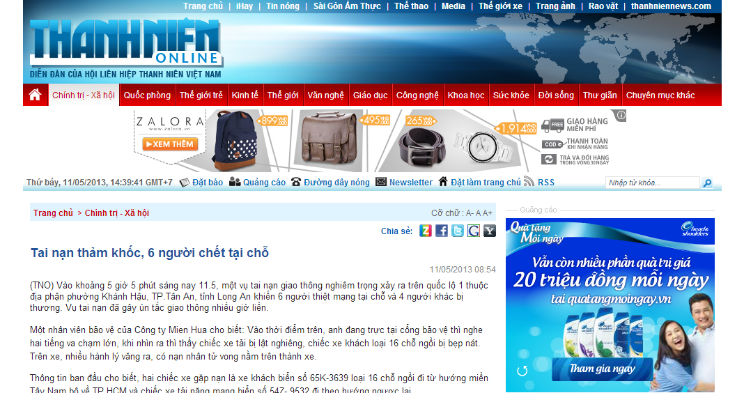 | Mẫu quảng cáo 728×90 của Zalada được hiển thị trên báo Thanh Niên |